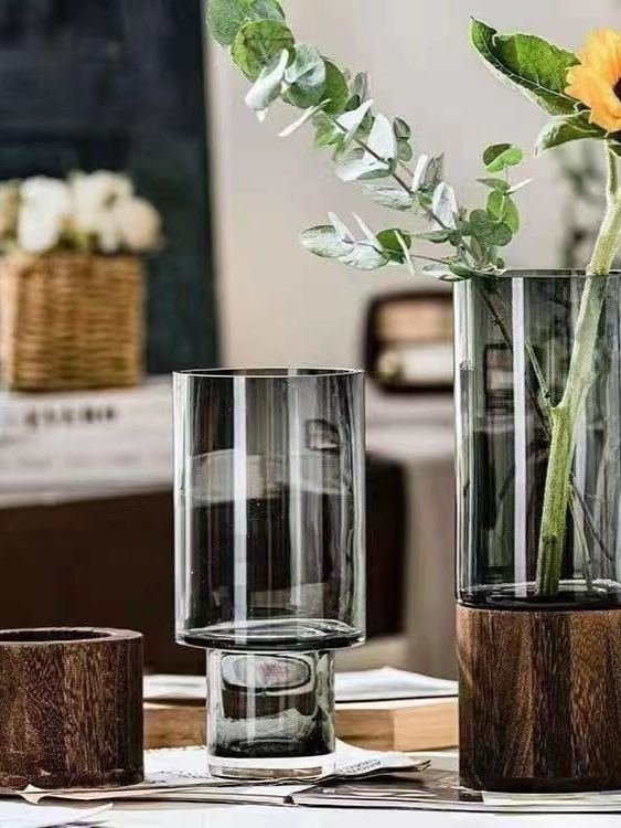 Bình Hoa Thủy Tinh Đế Gỗ Decor Cao Cấp – Sự Kết Hợp Hoàn Hảo Giữa Tinh Tế và Tự Nhiên
